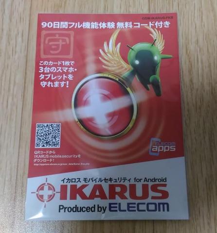 Androidのセキュリティソフト。90日版なので何かの付属品っぽい。3台までOK。