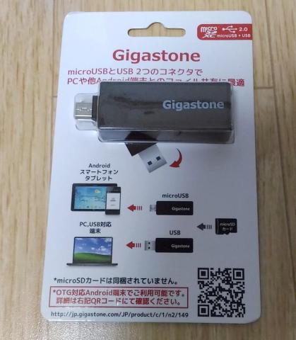 USBとMicroUSBが付いているスティック型カードリーダー。中にMicroSDを入れて、Android端末とPCとのデータのやり取りができる。実はこれは結構欲しかった商品の一つ。相場は1000-1500円程度らしいが、そこまでの価値は感じない(^^;