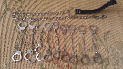 どうしよう、この物体(^^; 手錠の方は加工精度低くてちゃんと閉まらないものとかあります。チェーンの先にフックが付いたような物体は何に使うんだろ。↓こんな用途かw