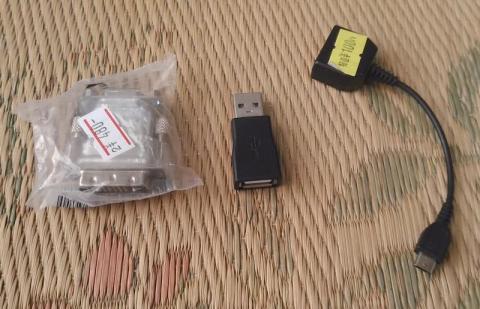 欲しい人には480円の値札並の価値があるDVI-HDMIアダプタですが、もう10個以上持ってるのでデフレ気味です。USB-USBアダプタは何のために・・・太い機器を隣接するUSBポートに挿しやすくするアタッチメント・・・にしては短すぎるw MicroUSB-USBメスケーブルと思ったら、ガラケー充電器コネクタだったorz