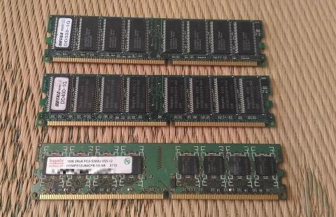 DDR1では大容量な1GBです。本当は600円程度の価値はあるのですが、もう30枚くらいは余っているのでだいぶデフレ化しています。DDR2はさらに安いです。どちらも対応マシンさえあれば実用的ですね。