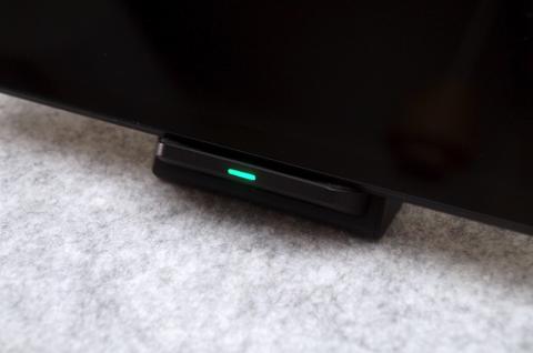 Qi充電に対応した機器を正しい位置にセットすると、一瞬LEDがまばたくように明滅した後、LEDが緑色に点灯。LEDの緑色の点灯が、給電状態の印です。