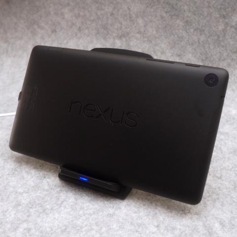 手持ちのQi対応機器がNexus 7(2013)で、タブレットを置いたら不安定になるかと思いきや、意外に安定していて問題ありません。足場の部分に敷いてあるゴムのおかげで、滑り落ちる心配もなし。