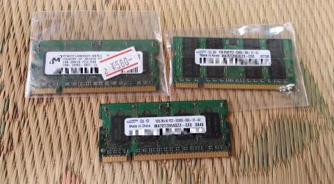 38.PC5300 DDR2-SODIMM 1GBが3枚(中古・妄想価格450円×3)