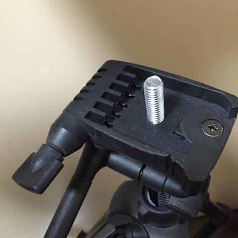 持っている三脚、SLIKのF740シリーズのクイックシュー取り付け部分に穴を開けて・・・