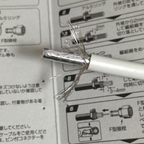 他の接栓は日本アンテナ製を使いましたが、マスプロ製のアルミリングの方がしっかり固定できた感じがします。