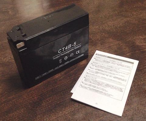 正規のバッテリーはユアサの「GT4B-5」というものですが、安くても5000円程度します。初めてのバイクということで他にも購入したグッズが多々あり、出来るだけ出費を抑えたいということで、自己責任と割り切って安価なGT4B-5互換のバッテリーを購入することにしました。