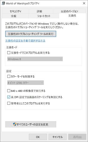 各アプリのプロパティ>互換性の
