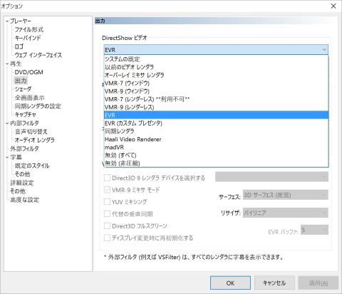 MPCのDirectShow設定をEVR(カスタム プレゼンタ)から
