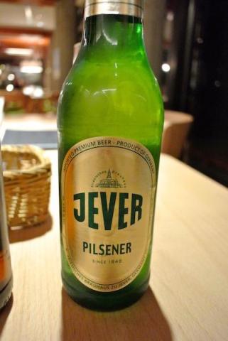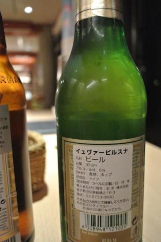 イエーバーのそれはゴシックフォントにハイネケンより薄い緑瓶。