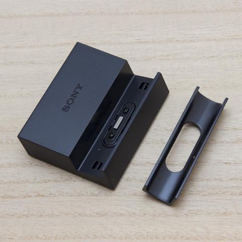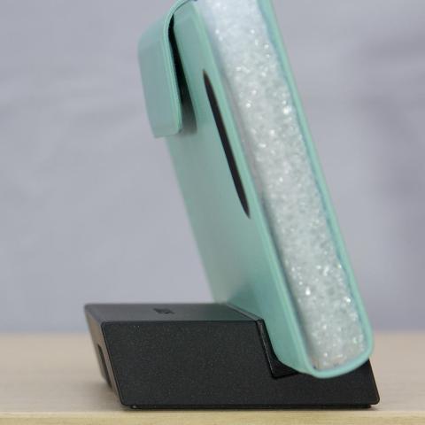 スマホに標準で添付されている卓上ホルダーにセットする事で