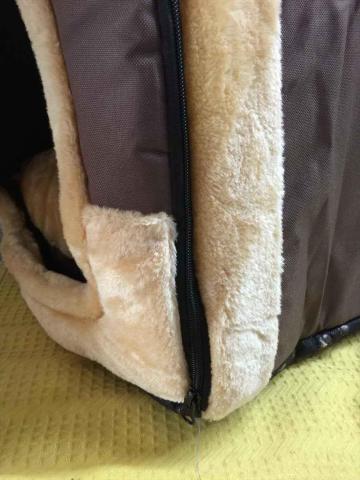 芯材がしっかりしているので、ちょっとやそっとで形が崩れそうにはありません。屋根に取っ手が付いてますが、さすがにペットを入れたまま、持ち歩くのは無理です。