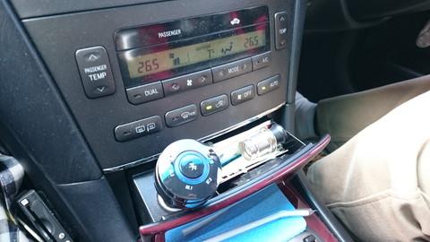 それをFMトランスミッターで車のラジオ周波数と合わせることで音楽を鳴らします。