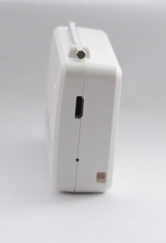 正面向かって右側面にはmicroUSB。USBの下側に見える小さな穴はリセットボタン。右下にはストラップホールがついてました。