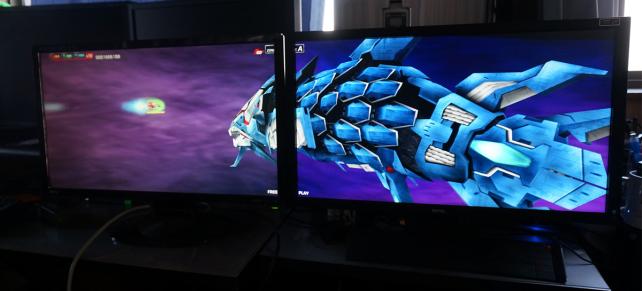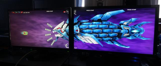 どちらにせよダライアスバーストのAC版はもちろん、初代ダライアスやダライアスIIをアーケードでプレイしたことがある人なら、家で超ワイド横STGができるというだけで魅力的な存在じゃないですかね。いまや大半のPCが複数モニタへの出力を対応してるしフルHDモニタすら手ごろな値段になったし、ステキですね。