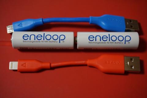 ものすごく短いLightningケーブルと、ものすごく短いMicroUSBケーブルのセットです。