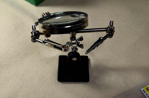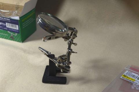 はんだ付けなどの時に両手を使わないと(片手に半田ゴテ、もう片手に部品を抑えているとき、半田付けができない状態になります おまけに老眼で細かいところが見えない そのようなときに使うのがこの作業台です 前から気になってはいたのですが、機会がなくて購入できませんでした