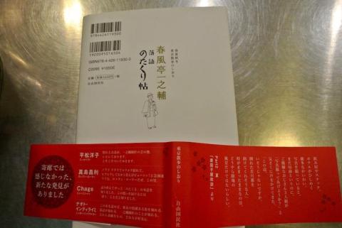 昨年の6月に大阪大丸心斎橋劇場で行われた「春風亭一之輔どっさり回るぜツアー」でサインを頂戴しております。