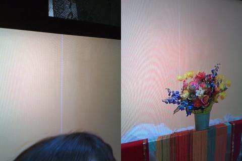 本製品を使い始めて約1か月、画面上に写真のようなライン抜けが見られるようになりました。ライン抜けは常に現れるわけではなく、何時ごろから症状が発生したのかは判らなかったのですが、『液晶テレビ レグザ』公式サイトのお客様サイトよりメールにて問い合わせてみました。