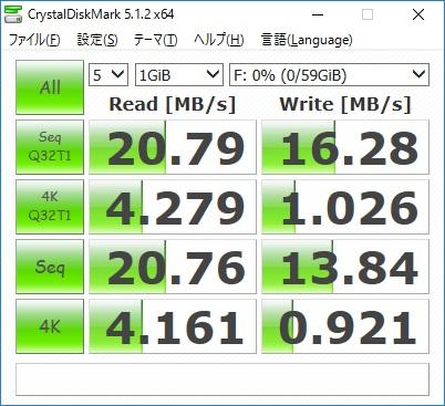 CrystalDiskMarkの結果が”?”な値だったので、会社のマルチカードリーダーを借用して再テスト。