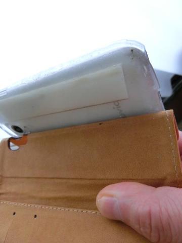 写真はケースにフィットしなくて落ちる危険があるので両面テープで固定しています。