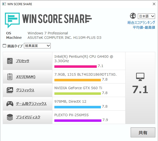 結構良い数値です。Pentium G4400って良いんじゃないの!