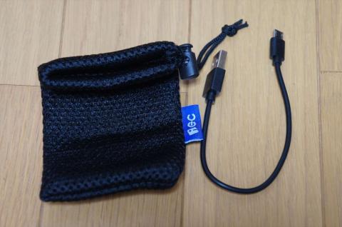 充電用のMicroUSB-USBケーブルと、持ち運びに便利なポーチも付属しています。