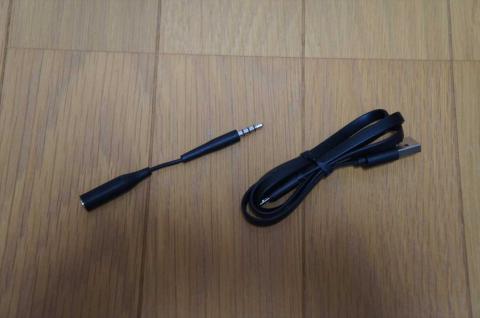 充電用のMicroUSB-USBケーブルとイヤホンの延長ケーブルが付属します。