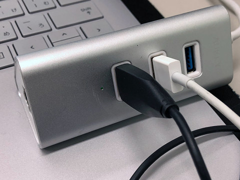 有線マウスを使用しているのですが、USBスロットが左側にしかないSurface Book2はちょっと面倒だったのですが、このハブがあって、ちょうどよかったです^^