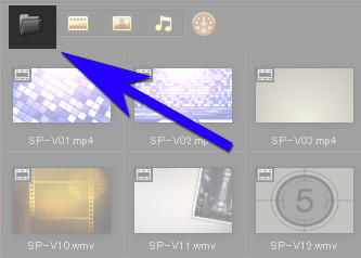 画面右上にある、ライブラリパネルに自分の動画や写真を取り込む方法は