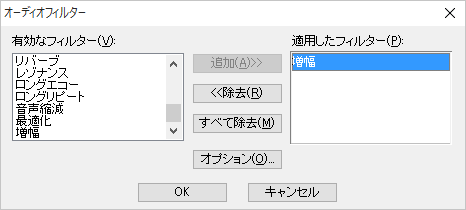 この「増幅」エフェクトを使って音量をあげて使ったりします。