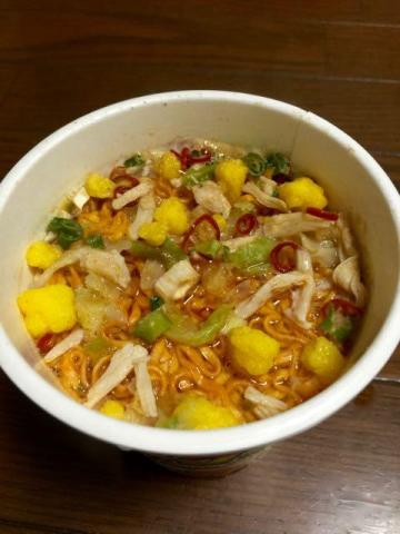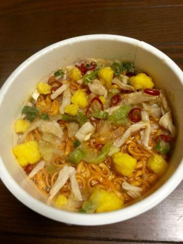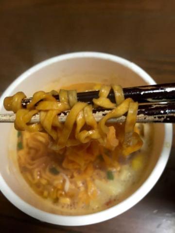とんがらしの効いた麺はとっても美味しい。ラーメンというよりカップ麺の部類です。