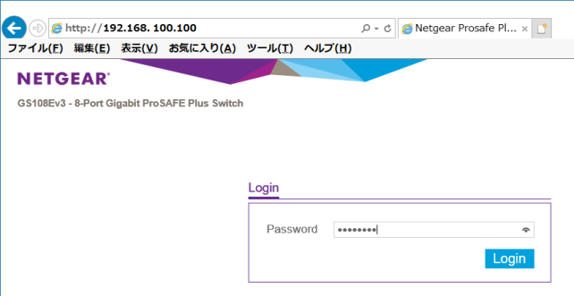 設定はIEブラウザから行いました、初期設定の「19.168.100.100」とアドレスバーに入力してEnterキーを押すとLogin画面になります、初期Passwordは「password」です。