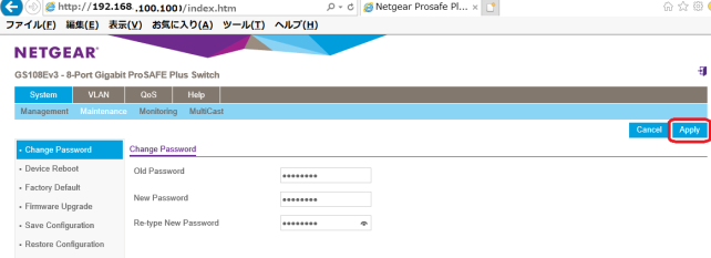 ログイン後にはセキュリティの事を考えて必ずPasswordの変更を行いましょう、「System」-「Maintenance」-「Change Password」に有ります。