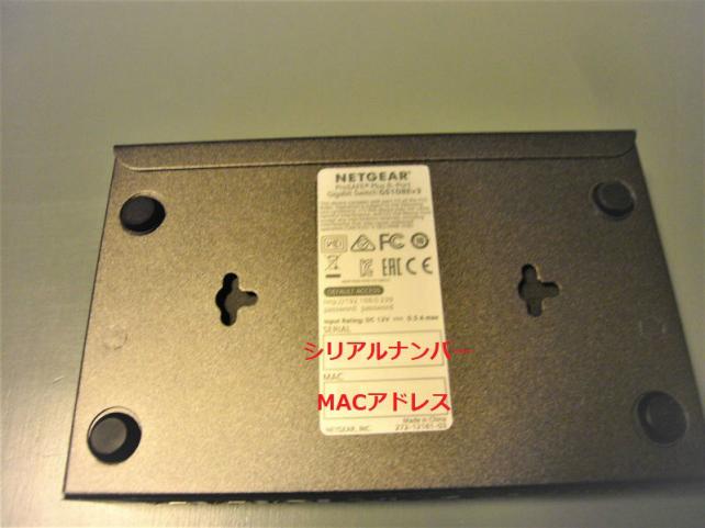 底面にはゴム足と壁掛け用の穴とシリアルNoとMACアドレスの記載が有ります。