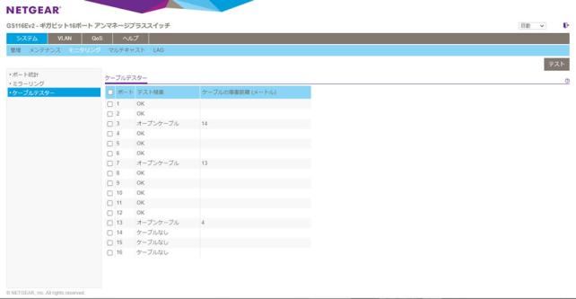 ケーブルテスターもあり、物理的な断線などがあるか確認できるのも便利。ケーブルの長さまで推定してくれたりもします。いろいろ推測できるデータがあるのは管理するには嬉しいですね。
