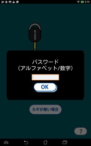 キーの抜いた状態で、ロック設定したアプリを起動すると、このような画面が現れます。