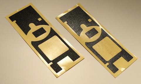 留意すべき点は、誤動作をしない様にバッテリーを抜いておく事と、貼り付けが難しい個所は接着面に水を塗ってやり貼り直し可能にしておき、正面向かって左側のパーツはグリップ側(側面)から貼り付けてやります。