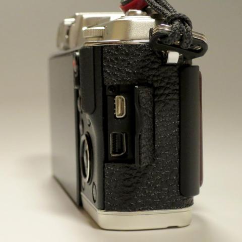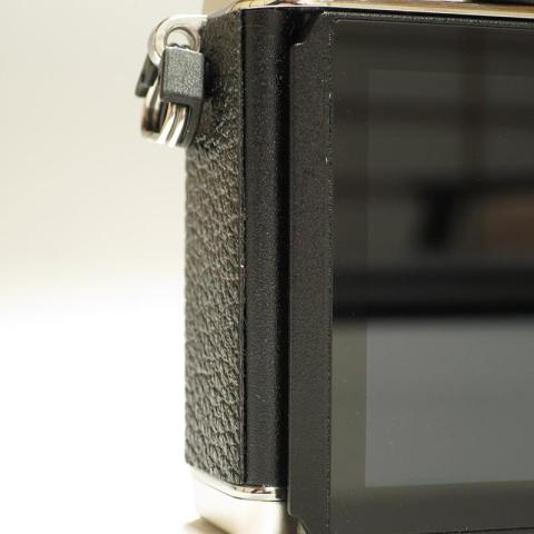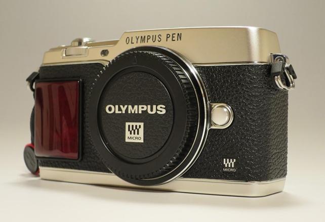 E-P5の黒いボディはザラザラしているので一瞬革っぽく見えますが金属製です。