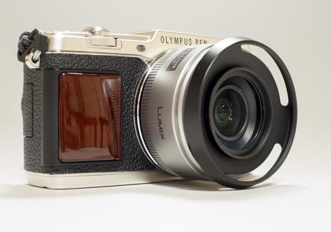 E-P5はボディのシルバーとブラックの境が若干盛り上がってしっかり区切られているため、前から見る分にはかなり自然な仕上がりになります。