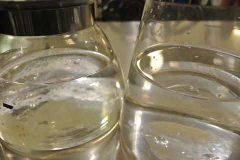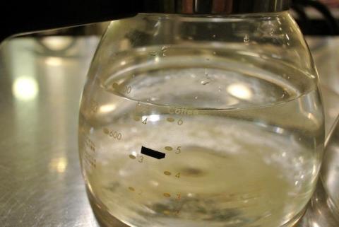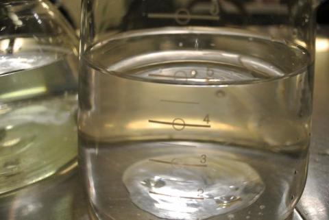 手持ちの「安物ガラスポット」にその水を移すと6杯強を指しています。