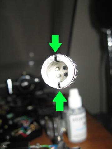 ヘッドシェルにカートリッジが垂直に取りつくようにピン(上部)があります