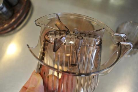 しかし新型のアロマフィルターの抽出口は底に配置されませんので、上記の作業を行うと、お湯がフィルターの底に溜まったままになります。