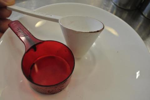 コーヒースプーン 右の白いものがメリタの付属 左の赤いものはカリタの付属品です。