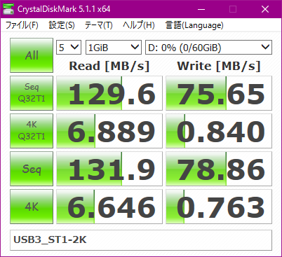 富士通 LIFEBOOK P772/E(Win10Pro-64bit) の USB3.0 端子で計測しました。
