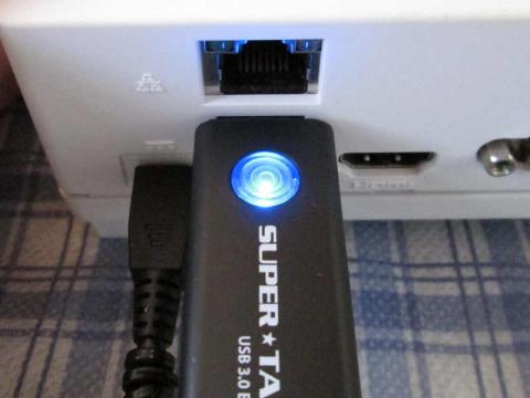 アクセスLED は接続速度によって色が変わる…なんて事は無くて、USB2.0 で接続しても青く光ります。