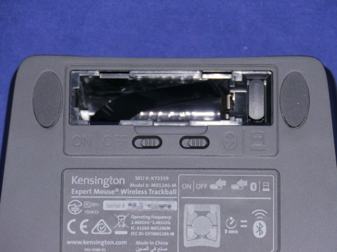 単三電池2個必要。スライド式の電源SWとBluetooth/USB無線2.4GHzの切替SW