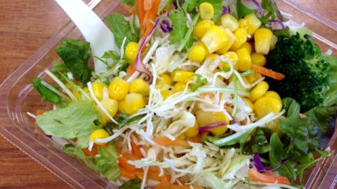 (会社でのお昼のサラダ、ドレッシングだけはエキストラバージンオイルで)