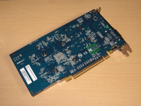 ELSA GeForce GTX 750 1GB S.A.C (GD750-1GERX)と同じく裏面にはメモリは実装されていません。PCI-E補助電源コネクタ用のランドパターンは残されていますがパーツは実装されていません。