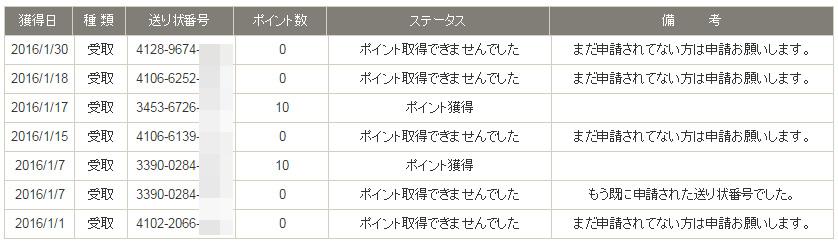 というか履歴を初めて今回確認したら、受取り記録はあるのにポイント付いていないのが沢山ある???